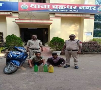 रायगढ़।( शोर संदेश ) थाना प्रभारी चक्रधरनगर निरीक्षक प्रशांत राव के नेतृत्व में चक्रधरनगर पुलिस द्वारा मुखबिर की सूचना पर कार्रवाई करते हुए गोवर्धनपुर रोड चिड़पाल कॉलोनी के पास स्कूटी वाहन क्रमांक CG 13 AL 4162 पर अवैध रूप से शराब परिवहन कर रहे दो व्यक्तियों को गिरफ्तार किया गया।