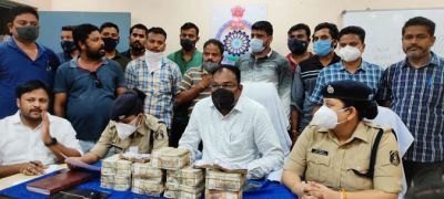 महासमुंद (शोर सन्देश)। महासमुंद जिले में पुलिस ने मंगलवार को 41.24 लाख नगद, 5 लक्जरी वाहन के साथ 11 जुआडियों को गिरफ्तार किया है। महासमुंद पुलिस द्वारा छत्तीसगढ राज्य में जुआ एक्ट में की गई अब तक कि सबसे बडी कार्यवाही है। पुलिस अधीक्षक प्रफुल्ल कुमार ठाकुर ने मीडिया को बताया कि 17 मई 2021 को सूचना मिली कि थाना तेन्दूकोना क्षेत्र ग्राम सम्हर के नेचर बास्केट फॉर्म हाउस में गुल नामक जुआ खेल रहे है। सूचना को गम्भीरता से लेते हुये सायबर सेल और थाना तेन्दूकोना पुलिस की टीम को पकडने हेतु निर्देशित किया गया। खिलाडी इतने शातिर थे कि पुलिस पार्टी की आने की सूचना देने के लिए आने-जाने वाले रास्तों पर वाचर लगाये थे और फॉर्म हाउस से दूर अपनी वाहनों को लगाकर खडे किये थे। सायबर सेल महासमुन्द की टीम व थाना तेन्दूकोना पुलिस की टीम के लिए यह एक चुनौती थी। सायबर सेल महासमुन्द पुलिस के द्वारा अलग-अलग टीम बनाकर बाईक व कार के माध्यम से फड तक पहुची और चारों ओर से घेराबंदी कर 11 जुआडियों को पकडा गया। जुआडियान के पास से कुल नगदी रकम 4124705/- रूपये तथा 05 लक्जरी कार एवं 12 नग विभिन्न कंपनियों के मंहगे मोबाईल कुल जुमला कीमती लगभग 12778705/- रू एवं गुल पासा (डाईस), टाईल्स जप्त कर जुआ एक्ट के तहत् थाना तेन्दूकोना में कार्यवाही की गयी है। यह सम्पूर्ण कार्यवाही पुलिस अधीक्षक प्रफुल्ल कुमार ठाकुर के मार्गदर्शन में अति. पुलिस अधीक्षक श्रीमती मेघा टेम्भुरकर साहू एवं अनुविभागीय अधिकारी(पु) बागबाहरा सुश्री लितेश सिंह के निर्देशन में सायबर सेल महासमुन्द प्रभारी उप निरीक्षक संजय सिंह राजपूत व थाना प्रभारी तेन्दूकोना हर्ष धुरंधर सउनि विजय मिश्रा, प्रआर श्रवण कुमार दास, प्रवीण शुक्ला, मिनेश ध्रुव, प्रेमलाल कर, भुनेश्वर टण्डन आर. रवि यादव, चम्पलेश ठाकुर, शुभम पाण्डेय, पीयूष शर्मा, दिनेश साहू, देव कोसरिया, शैलेन्द्र ठाकुर, संदीप भोई, ललित यादव, हेमन्त नायक, योगेन्द्र दुबे, विरेन्द्र नेताम, राजकुमार रात्रे, किशोर साहू, कमल जांगडे, त्रिलोक ठाकुर, रवि बरिहा, दुर्गा प्रसाद दीवान, लितक ठाकुर, इन्द्रजीत ठाकुर, मआर. मीरा यादव की टीम द्वारा किया गया।