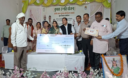 राजनांदगांव( शोर संदेश ) । कृषक उन्नति योजना अंतर्गत आदान सहायता राशि वितरण एवं वृहद किसान सम्मेलन कार्यक्रम के तहत छुरिया विकासखंड के सामुदायिक भवन जनपद पंचायत छुरिया में विकासखंड स्तरीय कृषक कार्यक्रम का आयोजन किया गया। कृषक उन्नति योजना अंतर्गत छुरिया विकासखंड के 34392 कृषकों के बैंक खाते में 119.8779 करोड़ रूपए की राशि का भुगतान किया गया। कार्यक्रम में खरीफ वर्ष 2025 में समिति में धान विक्रय करने वाले अधिकतम एवं न्यूनतम रकबा वाले कृषकों तथा ग्रीष्मकालीन धान के बदले अन्य फसल लेने वाले कृषकों और उन्नतशील कृषकों को शॉल-श्रीफल व प्रमाण पत्र प्रदान कर सम्मानित किया गया। कार्यक्रम में ग्राम जोशिलमती के कृषक यादव राम साहू ने प्राकृतिक खेती के संबंध में अपने अनुभव साझा किया और उपस्थित कृषकों को प्राकृतिक खेती को अपनाने के लिए प्रेरित किया। ग्राम केशाल के कृषक उमाशंकर चंद्रवंशी ने जैविक खेती के संबंध में अपना अनुभव साझा किया। साथ ही कृषक उन्नति योजना अंतर्गत ग्राम बापूटोला के कृषक कलीराम धनकर को 785720 रूपए का चेक प्रदान किया गया।
