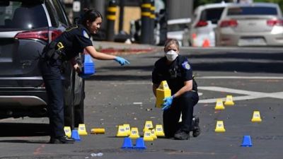 वरिष्ठ अधिकारियों के अनुसार, कम से कम पांच लोगों को लगभग 5 फीट 5 इंच लंबे और 180 पाउंड के एक व्यक्ति ने गोली मार दी, जो एक गैस मास्क और निर्माण स्थल वाले नारंगी रंग के कपड़े पहने हुए था। वह मौके से फरार हो गया और पकड़ा नहीं गया है।