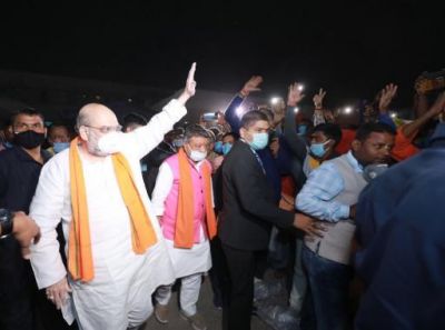 नेताजी सुभाष चंद्र बोस अंतरराष्ट्रीय हवाई अड्डे पर पार्टी कार्यकर्ताओं ने `अमित शाह जिंदाबाद और भारत माता की जय` के नारे लगाए। शाह ने इससे पहले बंगाली में एक ट्वीट में कहा था, `मैं दो दिवसीय दौरे पर पश्चिम बंगाल आ रहा हूं। यहां मैं भाजपा की पश्चिम बंगाल इकाई, राज्य के लोगों, मीडिया के मित्रों और विभिन्न समुदायों के प्रतिनिधियों से मिलने को लेकर आशान्वित हूं।` कोरोना वायरस महामारी के बाद से शाह की राज्य में पहली यात्रा है। वह इससे पहले एक मार्च को यहां आए थे।