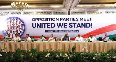 कांग्रेस अध्यक्ष मल्लिकार्जुन खरगे ने कहा कि हमारी एकता को देखकर मोदी ने 30 पार्टियों की बैठक बुलाई है। पहले वे अपने गठबंधन की बात तक नहीं करते थे, उनके यहां एक पार्टी के कई टुकड़े हो गए हैं और अब मोदी उन्हीं टुकड़ों को जोड़ने की कोशिश कर रहे हैं।