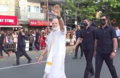 कोच्चि (शोर संदेश)। प्रधानमंत्री नरेंद्र मोदी का सोमवार को कोच्चि में भव्य स्वागत हुआ। पीएम के रोड शो के दौरान उन पर फूलों की वर्षा हुई। सड़के मोदी-मोदी के नारों के गूंज उठी। सड़क के दोनों ओर हजारों लोगों की भीड़ जमा थी और वे लगातार फूलों की बारिश कर रहे थे। वहीं पीएम नरेंद्र मोदी ने पैदल मार्च कर लोगों का उत्साीह से अभिवादन किया। वे केरल की पारंपरिक वेशभूषा में नजर आए और लोगों से मिले। जानकारी के अनुसार पीएम मोदी शाम करीब 5 बजे कोच्चि में आईएनएस गरुड़ नौसेना हवाई स्टेशन पहुंचें और वहां से सैक्रेड हार्ट कॉलेज ग्राउंड तक उनका रोड शो हुआ। प्रधानमंत्री के दौरे के लिए तैयारियों के तहत रोड शो वाले मार्ग पर सुरक्षा बढ़ाई गई थी और शहर में 2,060 पुलिसकर्मियों को तैनात किया गया।
