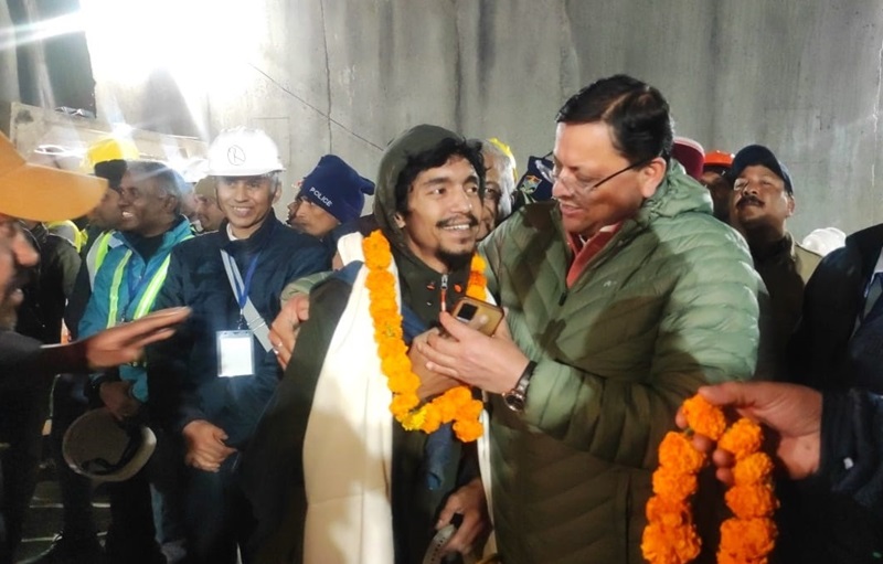उत्तरकाशी (शोर सन्देश)। उत्तरकाशी टनल हादसे में 17वें दिन बड़ी सफलता मिली है। दिवाली के दिन से उत्तरकाशी की निर्माणाधीन सुरंग में कैद सभी 41 श्रमिक बाहर निकल गए हैं। इस दौरान सुरंग के अंदर मेडिकल की टीम से लेकर सीएम धामी और अन्य अधिकारी मौजूद रहे। उत्तराखंड में 12 नवंबर से सिलक्यारा सुरंग के अंदर फंसे सभी 41 मजदूरों को सफलतापूर्वक बाहर निकाला गया। मुख्यमंत्री पुष्कर सिंह धामी बाहर निकाले गए श्रमिकों से मुलाकात कर रहे हैं। केंद्रीय राज्य मंत्री जनरल ( से.नि) वीके सिंह भी मौजूद हैं। मुख्यमंत्री पुष्कर सिंह धामी ने श्रमिकों और रेस्क्यू अभियान में जुटे हुए कर्मियों के मनोबल और साहस की जमकर सराहना की। बाहर निकाले जा रहे श्रमिको के परिजन भी टनल में मौजूद हैं। टनल से बाहर निकाले गए श्रमिकों का प्रारंभिक स्वास्थ्य परीक्षण टनल में बने अस्थाई मेडीकल कैंप में ही किया जाएगा। 400 से अधिक घंटे तक देसी-विदेशी मशीनों और एक्सपर्ट ने मुश्किलों और चुनौतियों से भरे मिशन में हर बाधा को पार करते हुए मजदूरों को धीरे-धीरे बाहर निकाला गया। मलबे में 800 एमएम की पाइप डालकर एक स्केप टनल बनाया गया जिसके जरिए मजदूरों को बाहर निकालने की प्रक्रिया शुरू हुई।