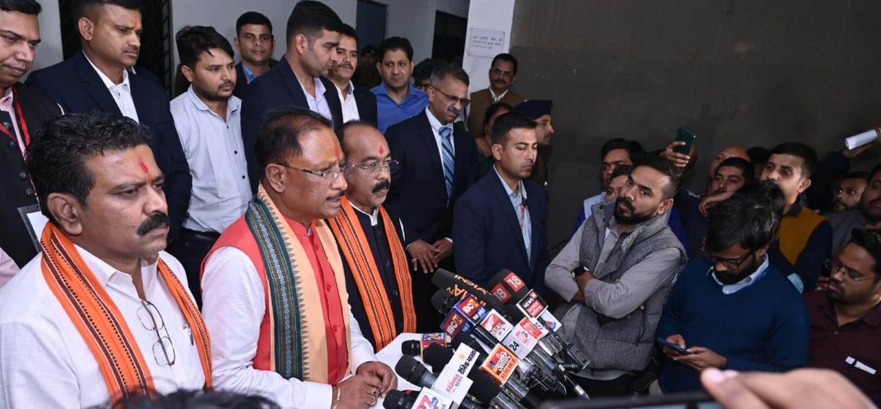 रायपुर(शोर सन्देश)। मुख्यमंत्री विष्णु देव साय ने बुधवार को अपने शपथ ग्रहण समारोह में शामिल होने पहुंचे प्रधानमंत्री नरेन्द्र मोदी, केन्द्रीय गृह मंत्री अमित शाह सहित केन्द्रीय मंत्रियों, विभिन्न राज्यों के मुख्यमंत्रियों, वरिष्ठ जनप्रतिनिधियों, सांसदों विधायकगणों और पूरे प्रदेश से बड़ी संख्या में पहुंचे आमजनों के प्रति हृदय से आभार प्रकट किया। मुख्यमंत्री साय मंत्रालय में कार्यभार ग्रहण करने के बाद मीडिया प्रतिनिधियों से चर्चा कर रहे थे। मुख्यमंत्री ने कहा कि प्रधानमंत्री, केन्द्रीय गृह मंत्री सहित वरिष्ठजनों और हजारों की संख्या में प्रदेश से आए लोगों ने शामिल होकर कार्यक्रम को सफल बनाया। उन्होंने प्रदेशवासियों और सभी मतदाताओं के प्रति आभार प्रकट किया। इस दौरान उन्होंने बताया कि नई सरकार की प्रथम केबिनेट की बैठक 14 दिसम्बर को आयोजित होगी। इसके बाद मंत्रालय के वरिष्ठ अधिकारियों और सचिवों के साथ परिचयात्मक बैठक होगी, साथ ही प्रेस कॉन्फ्रेंस भी आयोजित की जाएगी। मुख्यमंत्री ने कहा कि शपथ ग्रहण करने के बाद आज मंत्रालय में विधिवत पूजा-अर्चना करने के बाद आज प्रथम दिवस काम-काज शुरू किया।