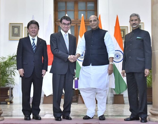 नई दिल्ली (शोर संदेश)।रक्षा मंत्री राजनाथ सिंह और विदेश मंत्री डॉ एस जयशंकर ने आज जापान की राजधानी टोक्यो में अपने जापानी समकक्ष विदेश मंत्री हयाशी योशिमासा और रक्षा मंत्री यासुकाजु हमदा के साथ दूसरी भारत-जापान 2+2 विदेश और रक्षा मंत्री स्तरीय बैठक की। इस बैठक के बाद विदेश मंत्रालय ने कहा कि मंत्रियों ने रक्षा उपकरण और प्रौद्योगिकी सहयोग के क्षेत्रों में द्विपक्षीय सहयोग का विस्तार करने के लिए दोनों देशों के लिए विशाल क्षमता को स्वीकार किया। बयान में कहा गया कि उन्होंने मानव रहित ग्राउंड व्हीकल/रोबोटिक्स और भारत-जापान संयुक्त कार्य समूह के रक्षा उपकरण और प्रौद्योगिकी सहयोग के क्षेत्रों में चल रहे सहयोग पर संतोष व्यक्त किया और रक्षा उपकरण और प्रौद्योगिकी में भविष्य के सहयोग के लिए ठोस क्षेत्रों की पहचान करने के लिए सहमति व्यक्त की। विदेश मंत्री डॉ एस जयशंकर ने 2+2 मंत्रिस्तरीय वार्ता समाप्त होने पर कहा कि हमने आपसी हित के द्विपक्षीय, क्षेत्रीय मुद्दों की विस्तृत श्रृंखला को कवर किया। हम विशेष रणनीतिक और वैश्विक साझेदारी का अनुसरण कर रहे हैं। भारत और जापान के बीच रक्षा उपकरण और तकनीकी सहयोग बढ़ाना प्रमुख प्राथमिकता वाले क्षेत्रों में से एक है। इससे पहले राजनाथ सिंह और जापान के उनके समकक्ष यासुकाजु हमदा ने द्विपक्षीय वार्ता में द्विपक्षीय व बहुपक्षीय अभ्यास जारी रखने को लेकर प्रतिबद्धता व्यक्त की और इस बात को लेकर सहमति व्यक्त की कि सैन्य अभ्यास के जल्द से जल्द शुरू होने से दोनों देशों की वायु सेनाओं के बीच ‘‘अधिक सहयोग’’ बढ़ेगा।आपको बता दें कि जापान के पूर्व प्रधानमंत्री शिंजो आबे और भारत के प्रधानमंत्री नरेंद्र मोदी के नेतृत्व में इस रिश्ते को और मजबूती मिली। यही कारण है कि दोनों देश अब बातचीत को और मजबूती से आगे बढ़ाने की कोशिश में लगे हुए हैं। 5 महीने पहले जापान के प्रधानमंत्री फुमियो किशिदा भारत दौरे पर आए थे। इस दौरान दोनों देशों ने अपने रिश्ते को और मजबूत करने के संकल्प को दोहराए थे। इसी दौरान जापान ने भारत में अगले पांच वर्ष तक 3,20,000 करोड़ रुपये निवेश करने की घोषणा की थी। अपने आप में जापान का यह भारत में बड़ा निवेश है। जापान के साथ भारत ने 2019 में ‘टू प्लस टू’ संवाद की शुरुआत की थी।