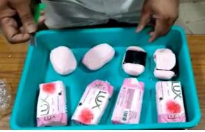 साबुन के काटने पर अधिकारियों को सोना मिला है। वीडियो में देखा जा सकता है कि तस्करों ने बहुत ही सफाई के साथ एक मशहूर ब्रांड के साबुन में सोना को फिट किया था। लेकिन एयरपोर्ट पर सुरक्षाकर्मियों को इसकी भनक लग गई और उन्होंने उसको पकड़ लिया। अधिकारियों ने जब साबुन को चेक किया तो उसके अंदर से 38 लाख रुपये का गोल्ड बरामद हुआ।