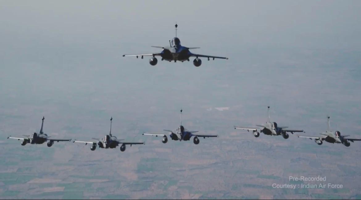 वहीं ‘सिंदूर’ फॉर्मेशन में 2 राफेल, 2 मिग 29, दो सुखोई-30 और एक जैगुआर विमान नजर आए।