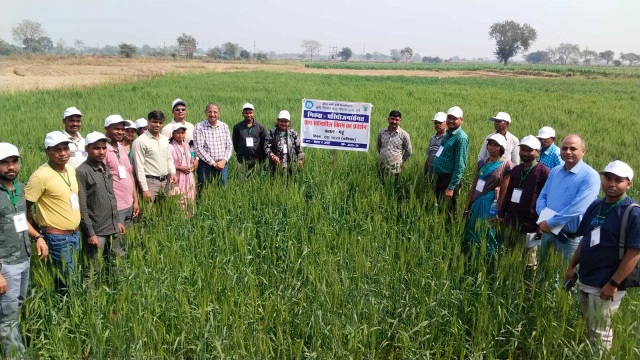 भ्रमण के दौरान कृषक दल ने पाटन विकासखंड के ग्राम करगा का दौरा कर बिना जुताई (जीरो टिलेज) पद्धति से गेहूं उत्पादन एवं अधिक तापमान सहनशील उन्नत किस्म ‘कनिष्का’ के प्रदर्शन का अवलोकन किया। साथ ही असिंचित क्षेत्रों में धान कटाई उपरांत खेत की नमी का उपयोग करते हुए उतेरा पद्धति से तिवड़ा की खेती तथा मेड़ पर कम अवधि वाली ‘राजेश्वरी फूले’ अरहर की खेती की तकनीक का निरीक्षण किया। स्थानीय प्रगतिशील कृषकों से संवाद कर दल ने कम लागत में अधिक उत्पादन एवं बेहतर लाभ की संभावनाओं पर विस्तार से जानकारी प्राप्त की।