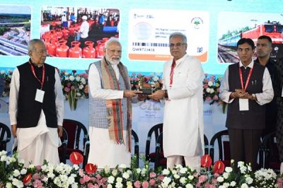 मुख्यमंत्री बघेल ने प्रधानमंत्री मोदी को स्मृति चिन्ह के रूप छत्तीसगढ़ के कारीगरों द्वारा तैयार अंगवस्त्र और मिलेट्स की टोकरी भेंट की।इस दौरान बघेल ने समारोह को संबोधित करते हुए कहा कि यह हमारे लिए बहुत खुशी की बात है कि हमारे प्रधानमंत्री छत्तीसगढ़ के दौरे में आये हैं। प्रभु श्रीराम के ननिहाल और माता कौशल्या की भूमि में मैं उनका स्वागत करता हूँ।