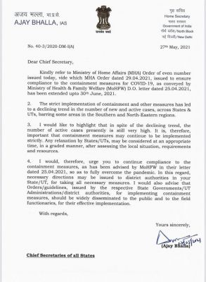 रायपुर (शोर सन्देश)। देश में कोरोना संक्रमण के दूसरे वेव के बाद अब कई राज्यों में संक्रमण कमजोर पड़ने लगा है, लेकिन देश में कोरोना की दूसरी लहर की तबाही को मद्देनजर रखते हुए केंद्र सरकार के गृह सचिव अजय भल्ला ने सभी राज्यों के मुख्य सचिवों को पत्र लिखकर, राज्यों में 30 जून तक लॉक डाउन बढ़ने के निर्देश दिए हैं। इससे छत्तीसगढ़ में सोमवार 31 मई को खत्म होने वाली लॉक डाउन की अटकलें ख़त्म हो गई है, अब छत्तीसगढ़ में भी 30 जून तक लॉक डाउन लागू रहेगा। हालाँकि राज्य सरकार की तरफ से समाचार लिखे जाने तक केंद्र सरकार के पत्र पहुंचे लगभग 3 दिन हो गए फिर भी कोई नया आदेश जारी नहीं किया गया है। वैसे आगे की नई गाइडलाइन और नई तारीखें कलेक्टर जारी करेंगे। माना जा रहा है कि वर्तमान में दी जा रहीं रियायतें जारी रहेंगी। केंद्र सरकार ने राज्यों में आवागमन की छूट दी है, बावजूद इसके राज्य सरकार ने अपनी सीमाओं को नहीं खोलने का फैसला लिया है। गाइडलाइन के मुताबिक पहले की तरह 30 जून तक लॉकडाउन जारी रहेगा। यानी अन्य राज्यों से आने वाले लोगों के लिए ही ई-पास अनिवार्य होगा। यही व्यवस्था अंतर जिला आवागमन के लिए लागू होगी। प्रदेश में 7 जून तक धार्मिक स्थल, शॉपिंग मॉल, सिनेमा हॉल, स्वीमिंग पूल, स्पा, शैक्षणिक संस्थान, भीड़ भरे आयोजन पर रोक रहेगी। इसके अलावा नाइट कर्फ्यू और रविवार को पूर्ण लॉकडाउन की व्यवस्था भी अगले आदेश तक जारी रहेगा। वहीं रोजमर्रा की सभी दुकानें सुबह छह से शाम छह बजे तक तथा देसी शराब दुकानें रात आठ बजे तक ही खोली जा सकेंगी। जीएडी सचिव का कहना है कि राज्य सरकार की नई गाइडलाइन सोमवार को जारी होगी तथा यह मंगलवार 1 जून से प्रभावशील होगी। पूर्व की तरह जिले के कलेक्टर अपने जिलों में संक्रमण की दर को ध्यान में रखकर ही दिशा-निर्देश जारी करेंगे।इसके पहले राज्यों और केंद्र शासित प्रदेशों के मुख्य सचिवों को जारी अपने आदेश में केंद्रीय गृह सचिव ने कहा कि स्थानीय हालात, जरूरत और स्रोतों का आकलन करने के बाद राज्य और केंद्र शासित प्रदेश उचित समय पर चरणबद्ध तरीके से पाबंदियों में किसी तरह की रियायत देने पर विचार कर सकते हैं, उन्होंने कहा कि मई महीने के लिए 29 अप्रैल को जारी किए गए दिशा-निर्देश 30 जून तक लागू रहेंगे। बयान के अनुसार जिन क्षेत्रों में मामलों की संख्या ज्यादा है, वहां जरूरी गतिविधियों को छोड़कर, रात के दौरान लोगों की आवाजाही पूरी तरह प्रतिबंधित होगी, इसमें कहा गया कि सामाजिक, राजनीतिक, खेल, मनोरंजन, शैक्षणिक, सांस्कृतिक, धार्मिक, त्योहार से संबंधित मौकों पर लोगों के जमा होने और सभाएं प्रतिबंधित हैं। शादी में 50 लोगों और अंतिम संस्कार में अधिकतम 20 लोगों के शामिल होने की इजाजत है, सभी शॉपिंग कॉम्प्लेक्स, सिनेमा 