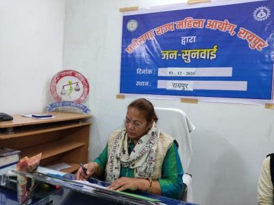 रायपुर (शोर सन्देश)। छत्तीसगढ़ राज्य महिला आयोग की अध्यक्ष डाॅ किरणमयी नायक ने आज रायपुर जिले में महिलाओं के उत्पीड़न संबंधित प्रकरणों पर जन सुनवाई की। सुनवाई के दौरान सोशल व फिजीकल डिस्टेंसिंग एवं सैनिटाईजर का प्रयोग करते हुए कार्यवाही प्रारंभ की गई।