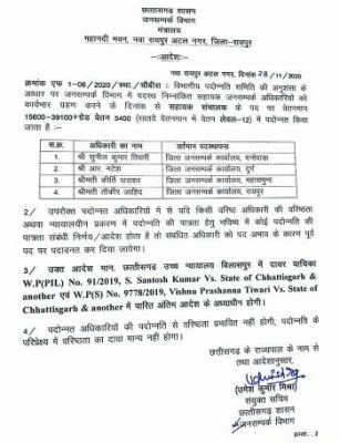 रायपुर (शोर सन्देश)। छत्तीसगढ़ जनसम्पर्क विभाग में विभागीय पदोन्नति समिति ने 4 अफसरों को सहायक संचालक पद पर पदोन्नत किया है। पदोन्नत होने वालों में जिला जनसम्पर्क कार्यालय दंतेवाड़ा में पदस्थ सुनील तिवारी, जिला जनसम्पर्क कार्यालय दुर्ग में पदस्थ आर नटेश, जिला जनसम्पर्क कार्यालय महासमुंद में पदस्थ कीर्ति परिसर और जनसम्पर्क संचालनालय रायपुर में पदस्थ तौकीर जाहिर मिर्जा शामिल हैं।