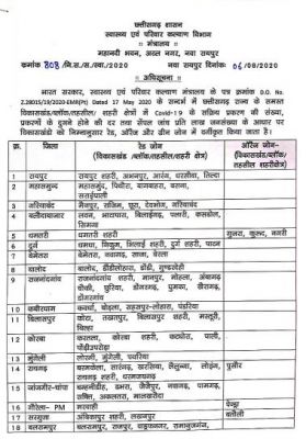 रायपुर (शोर सन्देश)। राज्य शासन के स्वास्थ्य विभाग ने रेड, ऑरेंज और ग्रीन जोन वाले क्षेत्रों की नई सूची अधिसूचित की है। केन्द्रीय स्वास्थ्य एवं परिवार कल्याण मंत्रालय के दिशा-निर्देशों के मुताबिक प्रदेश के सभी विकासखंडों और शहरी क्षेत्रों में कोविड-19 के सक्रिय मामलों की संख्या, इनके दोगुने होने की दर तथा प्रति एक लाख जनसंख्या पर सैंपल जांच की ताजा स्थिति के आधार पर उन्हें रेड, ऑरेंज और ग्रीन जोन में पुनः वर्गीकृत किया गया है। स्वास्थ्य विभाग द्वारा 2 अगस्त की स्थिति के आधार पर यह वर्गीकरण किया गया है