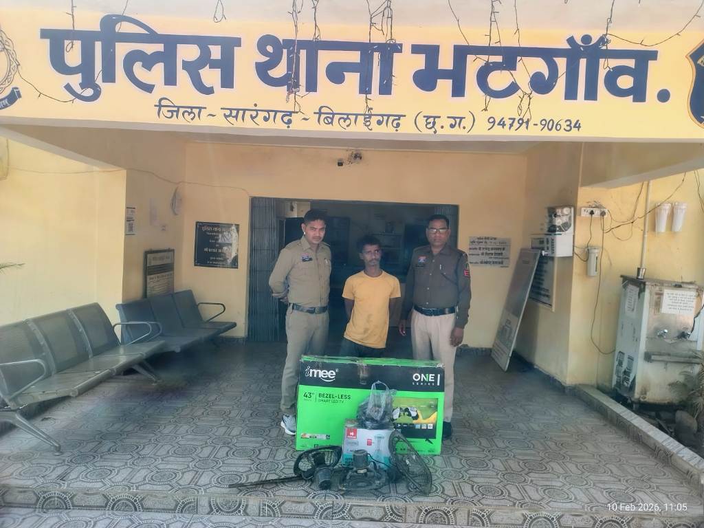 सारंगढ़-बिलाईगढ़। भटगांव में एक इलेक्ट्रॉनिक व फर्नीचर दुकान में चोरी के बाद आगजनी करने वाले आरोपी को पुलिस ने गिरफ्तार कर जेल भेज दिया है। घटना 8 फरवरी की रात की बताई जा रही है। प्रार्थी जानू केसरवानी, निवासी वार्ड क्रमांक 2 भटगांव, ने थाना भटगांव में लिखित शिकायत दर्ज कराई कि उनकी इलेक्ट्रॉनिक और फर्नीचर की दुकान बड़े तालाब के सामने स्थित है। 8 फरवरी की रात करीब 9:30 बजे दुकान बंद कर वे घर चले गए थे। तड़के लगभग 3 बजे बगल की श्रीराम ज्वेलर्स के संचालक आलोक सोनी ने फोन कर गोदाम में आग लगने की सूचना दी। मौके पर पहुंचकर देखा गया कि गोदाम में आग लगी हुई थी, जिससे तीन पेटी झालर लाइट, दो पेटी इलेक्ट्रॉनिक टॉर्च और दो स्टैंड फैन जलकर नष्ट हो गए। पास के दुकानदार टिकेश्वर साहू के सीसीटीवी फुटेज खंगालने पर रात 1:32 बजे आरोपी दिनेश पटेल (26 वर्ष), निवासी वार्ड क्रमांक 6 नगर पंचायत भटगांव, गोदाम का ताला तोड़कर अंदर घुसते और आग लगाते हुए दिखाई दिया। आरोपी ने गोदाम से 43 इंच का आईएमआई कंपनी का एलईडी टीवी (कीमत 20,000 रुपये) और एक हैवल्स कंपनी का मिक्सर ग्राइंडर (कीमत 8,500 रुपये) चोरी कर लिया था। कुल चोरी गई संपत्ति की कीमत लगभग 28,500 रुपये आंकी गई है। शिकायत के आधार पर पुलिस ने आरोपी के खिलाफ मामला दर्ज कर जांच शुरू की। विवेचना के दौरान आरोपी को गिरफ्तार कर न्यायालय में पेश किया गया, जहां से उसे न्यायिक रिमांड पर जेल भेज दिया गया। इस कार्रवाई में थाना प्रभारी शिवकुमार धारी, सहायक उप निरीक्षक बृजमोहन कश्यप, आरक्षक घनश्याम डड़सेना, भूपेंद्र साहू, राहुल खूंटे, खेलावन बघेल, लक्ष्मीकांत और तन्जय का विशेष योगदान रहा।