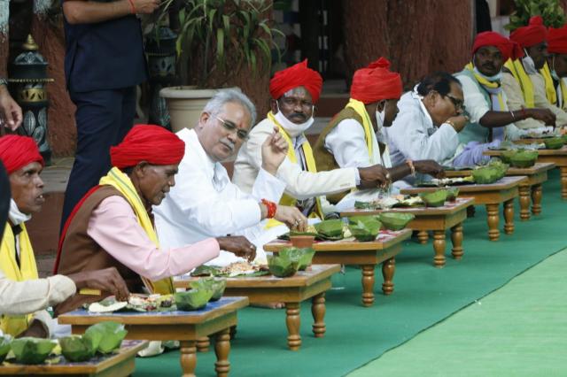 रायपुर (शोर सन्देश), मुख्यमंत्री भूपेश बघेल आज पुलिस ऑफिसर मेस जगदलपुर में बस्तर दशहरा उत्सव से जुड़े सभी मांझी-चालकी, मेम्बर-मेम्बरीन के साथ बैठकर भोजन किया। इस दौरान स्कूल शिक्षा मंत्री और जगदलपुर के प्रभारी मंत्री डॉ. प्रेमसाय सिंह टेकाम, उद्योग मंत्री कवासी लखमा, सांसद दीपक बैज भी उपस्थित थे।