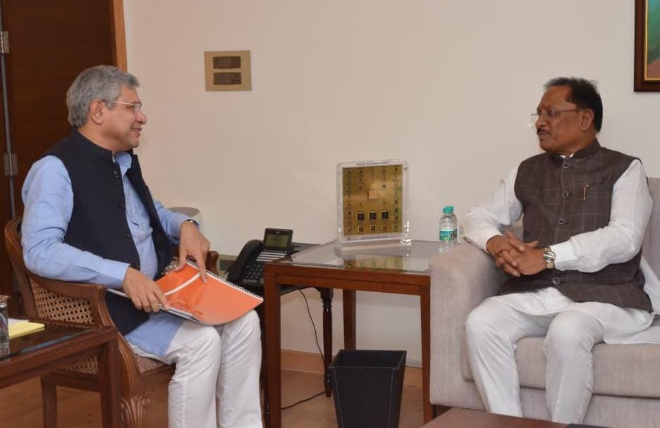 रायपुर । ( शोर संदेश ) मुख्यमंत्री विष्णुदेव साय ने मंगलवार को नई दिल्ली में केंद्रीय रेल मंत्री अश्विनी वैष्णव से सौजन्य भेंट कर छत्तीसगढ़ में रेल सुविधाओं के विस्तार,नए प्रोजेक्ट्स की प्रगति और चल रही परियोजनाओं के शीघ्र पूर्ण करने से संबंधित विषयों पर विस्तृत चर्चा की। मुख्यमंत्री ने आग्रह किया कि राज्य में स्वीकृत सभी परियोजनाओं को समयबद्ध रूप से आगे बढ़ाया जाए, ताकि नागरिकों,उद्योगों और व्यापार जगत को बेहतर, तेज़ और सुरक्षित परिवहन सुविधाएँ उपलब्ध हो सकें। रेल मंत्री वैष्णव ने मुख्यमंत्री द्वारा उठाए गए बिंदुओं का स्वागत करते हुए कहा कि रेलवे मंत्रालय छत्तीसगढ़ में कनेक्टिविटी को और अधिक मजबूत बनाने के लिए क्रियाशील है। इस अवसर पर मुख्यमंत्री के प्रमुख सचिव सुबोध कुमार सिंह, सचिव राहुल भगत एवं वाणिज्य एवं उद्योग विभाग के सचिव रजत कुमार उपस्थित थे।