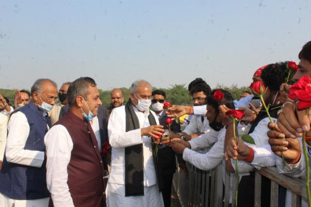 बिलासपुर (शोर सन्देश)। मुख्यमंत्री भूपेश बघेल और कृषि मंत्री रविन्द्र चौबे के बिलासपुर आगमन पर एस.ई.सी.एल. हेलीपेड पर उनका आत्मीय स्वागत किया गया। इस दौरान लोक निर्माण, धर्मस्व, गृह, जेल, विभाग और जिले के प्रभारी मंत्री ताम्रध्वज साहू, नगरीय प्रशासन मंत्री शिव डहरिया, संसदीय सचिव और तखतपुर विधायक रश्मि आशीष सिंह, बिलासपुर विधायक शैलेष पाण्डेय, महापौर रामशरण यादव, जिला पंचायत अध्यक्ष अरूण सिंह चौहान, कलेक्टर डॉ. सारांश मित्तर, पुलिस अधीक्षक प्रशांत अग्रवाल, अटल श्रीवास्तव, विजय केशरवानी, राजेन्द्र शुक्ला सहित बड़ी संख्या में जनप्रतिनिधि उपस्थित थे।
