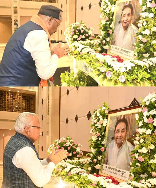 रायपुर। ( शोर संदेश ) मुख्यमंत्री विष्णुदेव साय और केंद्रीय ऊर्जा मंत्री मनोहरलाल खट्टर ने बुधवार को रायपुर के गौरव गार्डन में आयोजित स्वर्गीय महेंद्र सिंह कलचुरी की शोकसभा में शामिल होकर उन्हें श्रद्धांजलि दी।