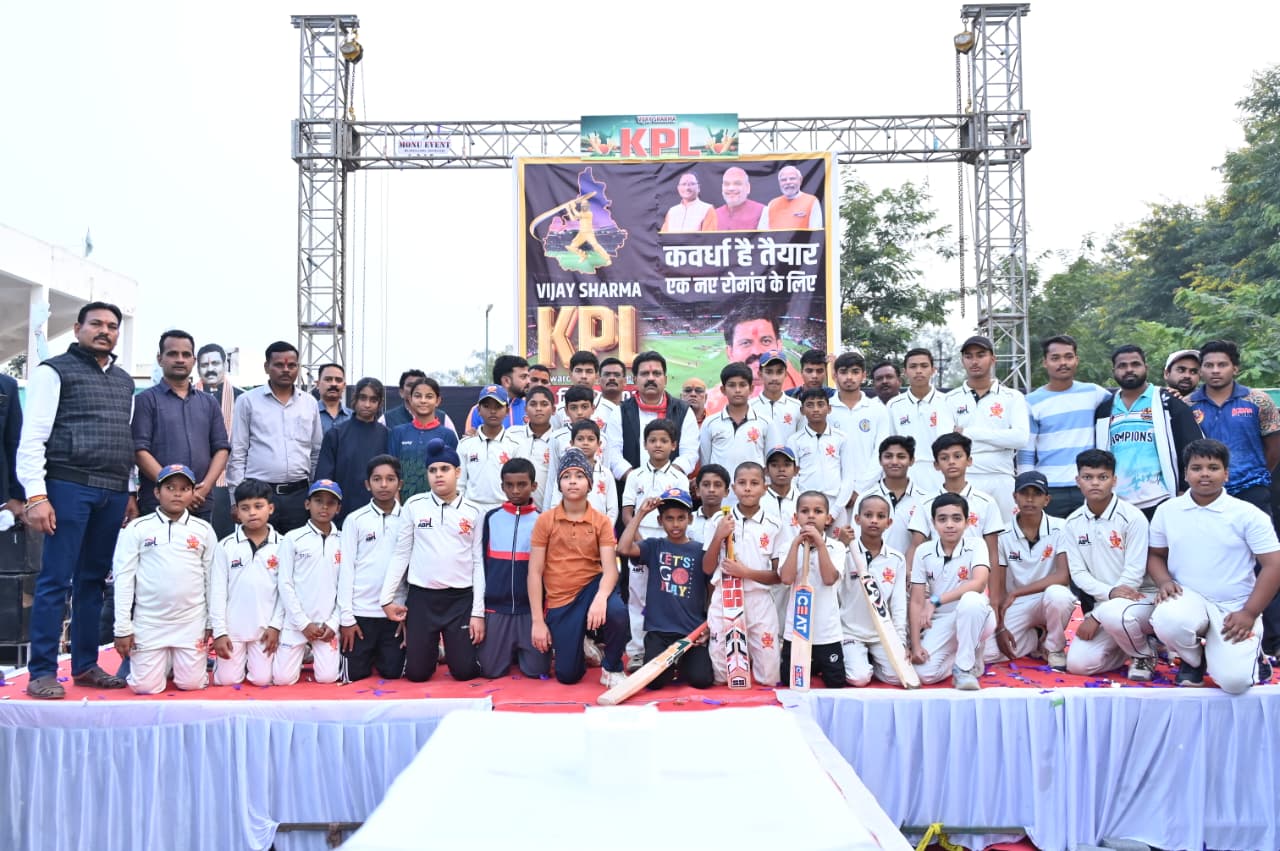 रायपुर,। ( शोर संदेश ) कवर्धा विधानसभा क्षेत्र में खेल प्रतिभाओं को प्रोत्साहित करने की दिशा में एक नई पहल करते हुए उपमुख्यमंत्री एवं कवर्धा विधायक विजय शर्मा ने आज विधायक कार्यालय कवर्धा में “विजय शर्मा कवर्धा प्रीमियर लीग” के पोस्टर का विधिवत विमोचन किया। इस अवसर पर उन्होंने खिलाड़ियों का उत्साहवर्धन करते हुए स्वयं बल्ले से प्रतीकात्मक शॉट भी लगाया।