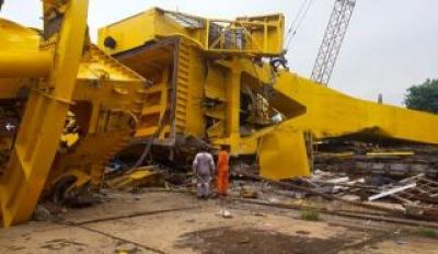 विशाखापट्टनम (शोर सन्देश)। विशाखापट्टनम के हिन्दुस्तान शिपयार्ड लिमिटेड में एक विशाल क्रेन गिरने से 11 लोगों की मौत हो गई है। घटना को लेकर डीसीपी सुरेश बाबू ने कहा है कि बड़ी क्रेन गिर गई जिसकी चपेट में आने से 11 लोगों की मौत हो गई है और एक जख्मी हैं। क्रेन किरने के बाद शिपयार्ड में अफरा-तफरी मच गई है। हादसे को लेकर स्थिति अभी साफ नहीं हो पाई है कि आखिरी यह घटना कैसे घटित हुई, जिसकी वजह से यह क्रेन गिर गई। इस संबंध में अभी तक कोई जानकारी नहीं मिली है।