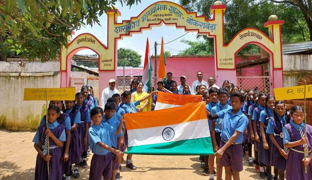 इस अवसर पर सीईओ जिला पंचायत रोमा श्रीवास्तव ने बताया कि जिले में कलेक्टर नम्रता गांधी के निर्देशानुसार एवं मार्गदर्शन में सभी भारतीय नागरिकों को राष्ट्रीय ध्वज अपने घर पर फहराने के लिए प्रेरित कर रहे हैं ताकि आमजन में देश भक्ति की भावना विकसित हो तथा राष्ट्रीय ध्वज के प्रति सम्मान में भी वृद्धि हो क्योंकि तिरंगा हमारी आन-बान और शान है। तिरंगा का यह गौरव और सम्मान हर घर तक पहुंचे, इस संदेश के साथ तिरंगा यात्राएं, तिरंगा रैली गांव गांव में निकाली जा रही है। गांव के हर बाला द्वारा भारत माता की जय, वंदेमातरम्, जय जवान-जय किसान, तिरंगा यात्रा जिंदाबाद के जयकारे की अनुगूंज दूर तक सुनाई दे रही है।