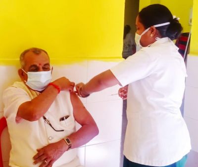 00 जिला आयुर्वेदिक अस्पताल में कृष्णकांत द्विवेदी ने लगवाया पहला टीका