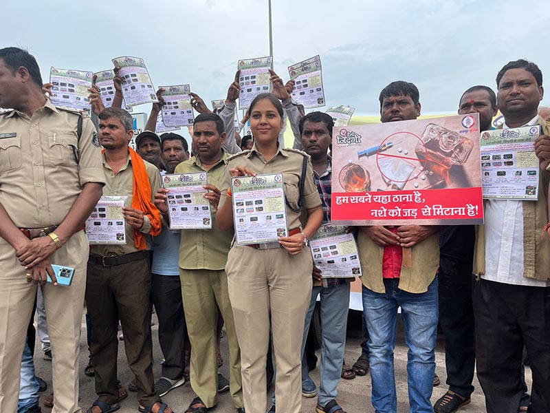 रायपुर (शोर संदेश) नशे के विरूद्ध व्यापक जन जागरूकता अभियान ‘‘हैलो जिन्दगी’’ के तहत् रायपुर पुलिस विभिन्न स्थानों में जनजागरूकता कार्यक्रम आयोजित कर रही है। पुलिस महानिरीक्षक रायपुर रेंज अजय यादव और वरिष्ठ पुलिस अधीक्षक रायपुर प्रशांत अग्रवाल ने शनिवार को नशे के विरूद्ध व्यापक जन जागरूकता अभियान ‘‘हैलो जिन्दगी’’ का शुभारंभ करते हुए जन जागरूकता के लिए तैयार गाड़ियों को सिविल लाईन स्थित सी-4 भवन से झंडी दिखाकर रवाना किया था।इस जागरूकता अभियान के तहत शहर के अलग-अलग क्षेत्रों, पब्लिक प्लेसेस, हाउसिंग सोसायटी, मोहल्ले, स्कूल/कॉलेज, यूनिवर्सिटी शासकीय एवं निजी कार्यालयों सहित ग्रामीण क्षेत्रों में भी विभिन्न माध्यमों से नागरिकों को जागरूक करना है।