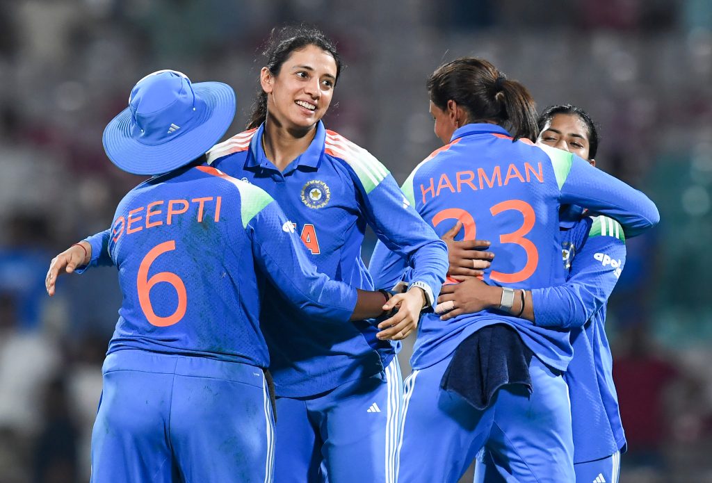 मंधाना के पवेलियन लौटने के बाद जेमिमा रोड्रिग्स ने कप्तान हरमनप्रीत कौर के साथ तीसरे विकेट के लिए 39 गेंदों में 55 रन की अटूट साझेदारी करते हुए टीम को आसान टीम दिलाई। जेमिमा ने 44 गेंदों में 10 चौकों की मदद से 69 रन बनाए, जबकि कप्तान ने 15 रन टीम के खाते में जोड़े। विपक्षी टीम की ओर से काव्या कविंदी और इनोका रणवीरा ने 1-1 विकेट अपने नाम किया।