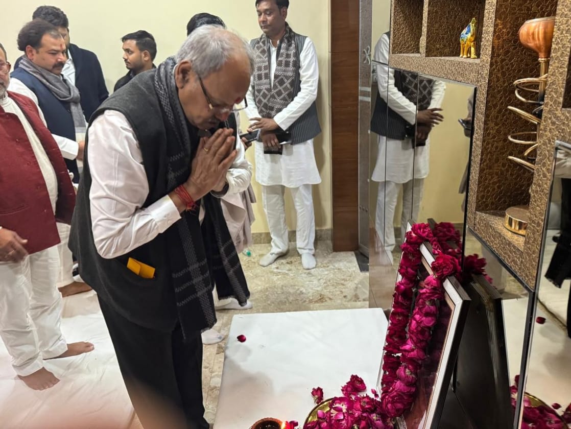 नई दिल्ली, 5 दिसम्बर रायपुर के सांसद बृजमोहन अग्रवाल ने शुक्रवार को ग्वालियर प्रवास के दौरान वरिष्ठ पत्रकार एवं हरिभूमि तथा आईएनएच न्यूज चैनल के प्रधान संपादक डॉ. हिमांशु द्विवेदी के सिंधी कॉलोनी स्थित निवास पर पहुँचकर उनके पिताश्री स्व.कीर्ति नारायण द्विवेदी को श्रद्धांजलि अर्पित की। छत्तीसगढ़ भाजपा के वरिष्ठ नेता और पूर्व कैबिनेट मंत्री बृजमोहन अग्रवाल ने दिवंगत आत्मा की शांति के लिए पुष्पांजलि अर्पित की और शोकाकुल परिवार के प्रति शोक संवेदनाएँ व्यक्त कीं। सांसद बृजमोहन अग्रवाल ने स्व. कीर्ति नारायण द्विवेदी की धर्मपत्नी रमा द्विवेदी, डॉ. हिमांशु द्विवेदी सहित परिजन से भेंट कर उन्हें ढांढस बंधाया। उन्होंने कहा कि स्व. द्विवेदी एक सरल, सौम्य व आदर्शवादी व्यक्तित्व थे। गत 25 नवम्बर को कीर्ति नारायण द्विवेदी का 80 वर्ष की आयु में निधन हो गया था।