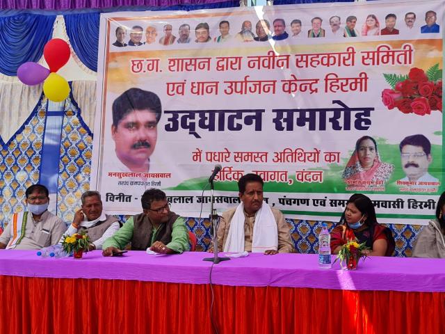 रायपुर (शोर सन्देश)। बलौदाबाजार जिले के नये धान खरीदी केन्द्र हिरमी में मुख्य अतिथि प्रदेश कांग्रेस उपाध्यक्ष गिरीश देवांगन, प्रदेश कांग्रेस संचार विभाग के अध्यक्ष शैलेश नितिन त्रिवेदी की उपस्थिति में और पूर्व विधायक जनक राम वर्मा की अध्यक्षता में धान खरीदी की शुरूआत हुई। इस अवसर पर प्रदेश कांग्रेस के संयुक्त महामंत्री राम गिडलानी, प्रदेश कांग्रेस के महामंत्री सीमा वर्मा सहित अनेक नेतागण उपस्थित थे।