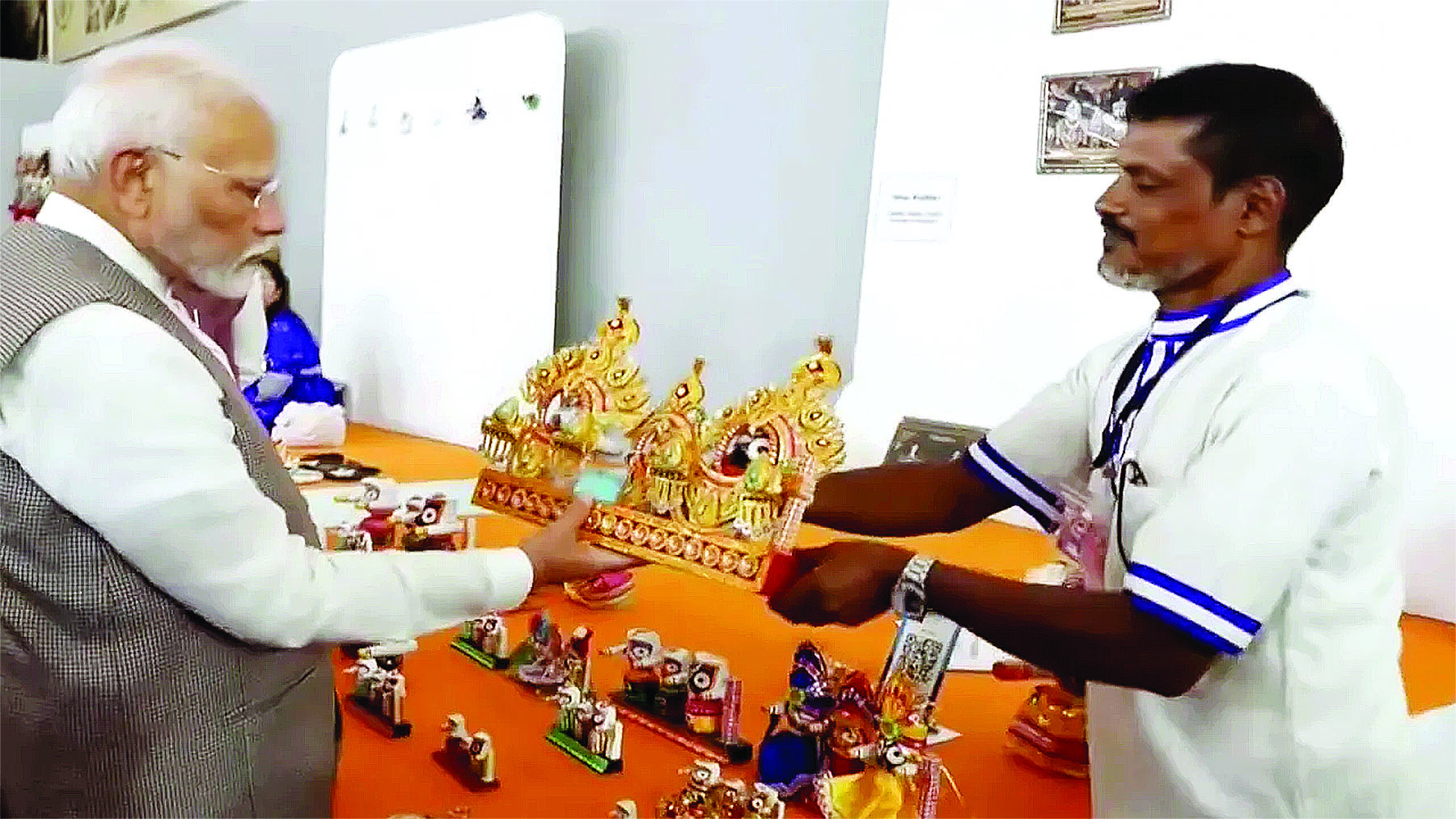 सोशल मीडिया में वायरल हो रहे वीडियो में देखा जा सकता है कि पीएम मोदी शिल्पकार से पूछते हैं कि आपसे मुझे क्या खरीदना चाहिए. इस पर शिल्पकार पीएम मोदी को भगवान जगन्नाथ की कलाकृति खरीदने को कहता है. उसके बाद पीएम मोदी यूपीआई के जरिए पेमेंट करते हैं. पेमेंट देने के बाद पीएम मोदी उससे पूछते हैं पेमेंट मिल गया क्या?