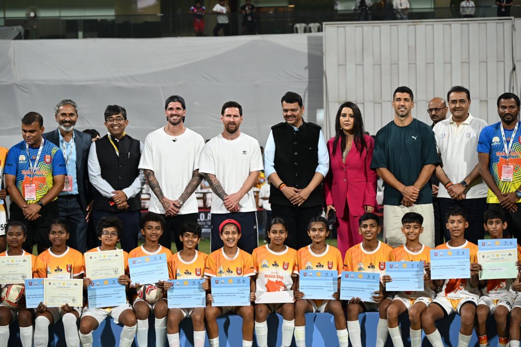नई दिल्ली( शोर संदेश )। अर्जेंटीना के स्टार फुटबॉलर लियोनेल मेसी रविवार शाम वानखेड़े स्टेडियम पहुंचे, जहां मुख्यमंत्री देवेंद्र फडणवीस ने उनका स्वागत किया। इस मौके पर सीएम फडणवीस ने आधिकारिक तौर पर ‘प्रोजेक्ट महादेव’ लॉन्च किया। ‘प्रोजेक्ट महादेव’ का मकसद राज्य के स्कूल जाने वाले लड़के और लड़कियों को परिवर्तनकारी समर्थन देना और उनके फुटबॉल के सपनों को पूरा करने में मदद करना है।