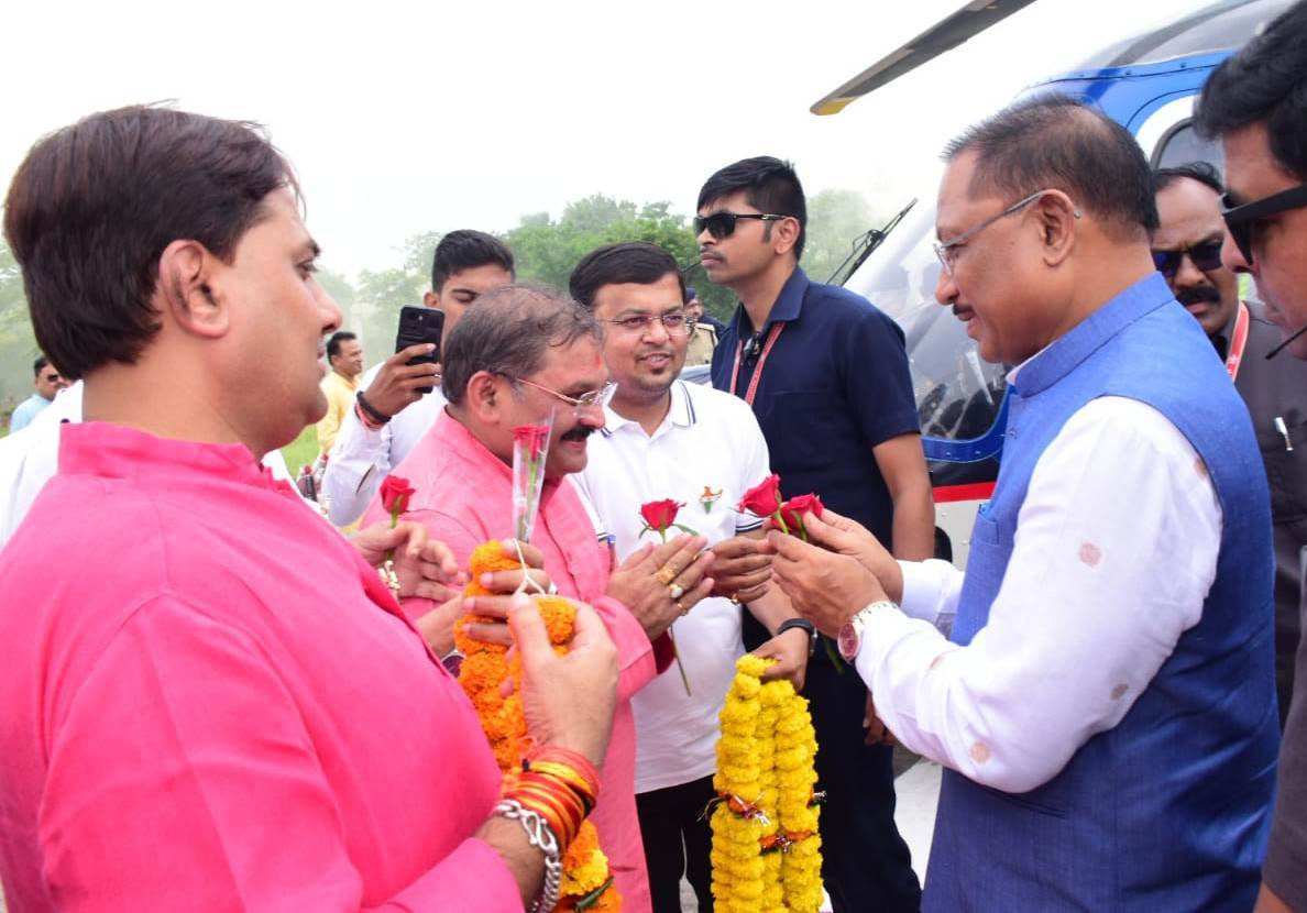 रायपुर ( शोर संदेश ) । मुख्यमंत्री विष्णु देव साय के राजनांदगांव पीटीएस हेलीपेड पहुंचने पर सांसद संतोष पाण्डेय सहित जनप्रतिनिधियों, जिला प्रशासन के वरिष्ठ अधिकारियों ने उनका आत्मीय स्वागत किया। मुख्यमंत्री के साथ विधानसभा अध्यक्ष डॉ. रमन सिंह, विधायक गुरू खुशवंत साहेब भी राजनांदगांव पहुंचे। मुख्यमंत्री साय तिरंगा रैली के कार्यक्रम तथा जिला सतनामी सेवा समिति राजनांदगांव द्वारा आयोजित ममतामयी मिनीमाता निर्वाण दिवस एवं जिला स्तरीय शपथ ग्रहण समारोह में शामिल होने के लिए राजनांदगांव पहुंचे हैं।