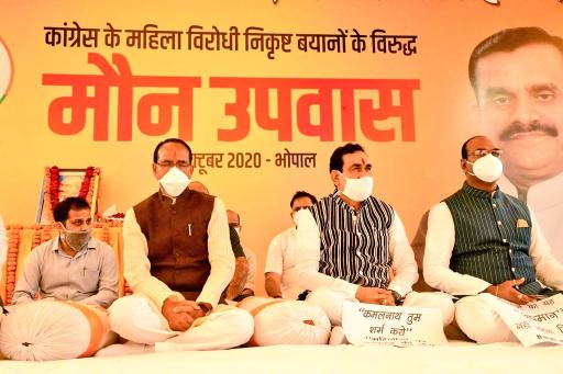 भोपाल (शोर सन्देश)। मध्य प्रदेश के पूर्व मुख्यमंत्री कमलनाथ द्वारा अनुसूचित जाति वर्ग की महिला एवं पूर्व मंत्री इमरतीदेवी के खिलाफ अपमानजनक बयान के विरोध में आज मुख्यमंत्री शिवराज सिंह चौहान और भारतीय जनता पार्टी (भाजपा) के अन्य नेता मौन उपवास पर बैठ गए।