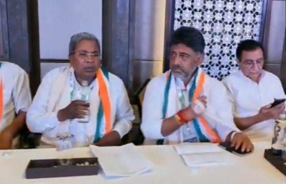 बेंगलुरु (शोर संदेश)।बेंगलुरु में कांग्रेस विधायक दल की बैठक खत्म हो गई है। बैठक में सर्वसम्मति से एक प्रस्ताव पास किया गया है। इस प्रस्ताव के मुताबिक, विधायक दल के नेता का चयन राष्ट्रीय अध्यक्ष मल्लिकार्जुन खड़गे करेंगे। बताया जा रहा है कि सोमवार को सिद्धारमैया और डीके शिवकुमार दिल्ली आ सकते हैं। विधायक दल की बैठक शुरू होने से पहले चार नेताओं ने अलग से बैठक की। इन नेताओं में कर्नाटक प्रभारी रणदीप सुरजेवाला, डीके शिवकुमार, सिद्धारमैया और केसी वेणुगोपाल शामिल हैं। बता दें कि बेंगलुरु में कर्नाटक कांग्रेस के वरिष्ठ नेता सिद्धारमैया के आवास के बाहर पोस्टर लगाए गए हैं, जिनमें उन्हें कर्नाटक का अगला सीएम बताया गया है। वहीं डीके शिवकुमार के आवास के बाहर भी पोस्टर लगाए गए हैं, जिनमें उन्हें राज्य का सीएम बताया गया है।