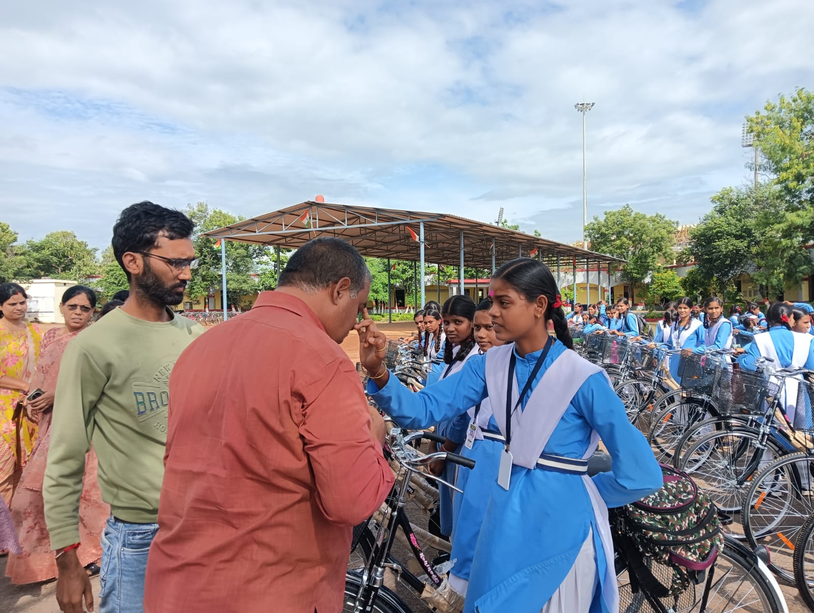 समस्त सदस्यों एवं शिक्षकों द्वारा तिलक लगाकर स्वागत करते हुए विद्याथियों को साइकल सौंपा गया ! बच्चो ने साइकल पाकर उत्साहित नजर आये ! मंडल उपाध्यक्ष रिंकू चंद्राकर द्वारा बच्चो को निर्धारित समय पर स्कूल आने के लिए कहा गया और बच्चो द्वारा समय पर उपस्थिति के लिए शपथ भी लिया गया !