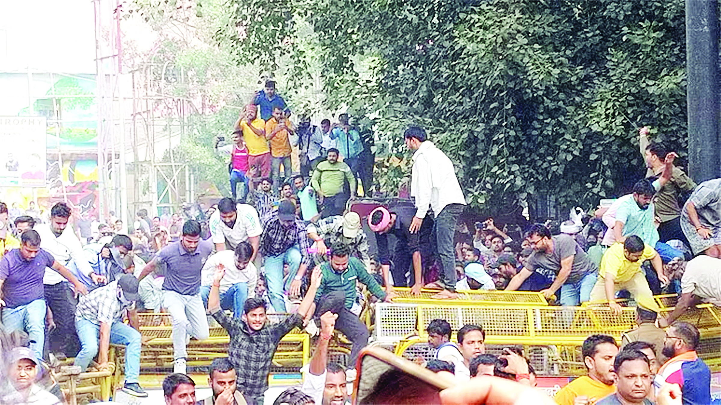 छात्रों का यह प्रदर्शन बीते सोमवार सुबह 11 बजे से ही जारी है. प्रदर्शन का यह चौथा दिन है और छात्रों के उत्साह को देखते हुए लग रहा है कि वह अपनी मांगों पर आगे भी अड़े रहेंगे. छात्र हर रोज की तरह गुरुवार को भी धरना प्रदर्शन कर रहे थे. प्रयागराज में सिविल लाइंस स्थित आयोग के दफ्तर जहां छात्र धरना दे रहे हैं, वहां तीन तरफ से रास्ते मिलते हैं. पुलिस ने तीनों रास्तों को बैरिकेड से बंद कर दिया और सुरक्षा बढ़ा दी. छात्रों का आरोप है कि रात में कुछ पुलिसवाले सादी वर्दी में आए और कुछ छात्रों को उठाकर ले गए.गुरुवार सुबह हल्ला हो गया कि धरनास्थल से छात्रों को उठाया जा रहा है. इसके बाद धरनास्थल से करीब 200 मीटर दूर चौराहे पर हजारों छात्र इकट्ठा हो गए.करीब पांच से छह हजार की छात्रों की इस भीड़ ने आयोग के दफ्तर की तरफ जाने से रोकने के लिए लगाए गए बैरिकेड तोड़ डाले. इसके बाद छात्रों का हुजूम फिर आयोग के दफ्तर के सामने धरने पर जुट गया है.