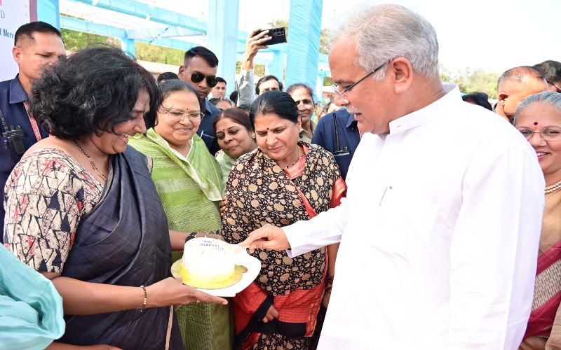 रायपुर (शोर संदेश)। मुख्यमंत्री भूपेश बघेल ने महिला मड़ई में स्व-सहायता समूहों द्वारा निर्मित सामानों की बिक्री के लिए लगाए गए स्टाॅलों का अवलोकन किया। इस दौरान मिलेट कैफे में ज्वार का बना केक काटकर महिलाओं का उत्साहवर्धन किया। इस मौके पर मुख्यमंत्री बघेल को जिला सक्ती के नंदौरखुर्द के परमेश्वरी स्व-सहायता समूह ने जीका सिल्क की साड़ी और बिलासपुर जिले की प्रतिभा आरती महिला समूह द्वारा पगड़ी और जूट से बनी गणेश की मूर्ति भेंट की गई। इसी प्रकार मुख्यमंत्री को बाल जीवन ज्योति संस्था की मानसिक दिव्यांग बालिकाओं ने खुद से बनाया बुके भी भेंट किया। मुख्यमंत्री ने नारायणपुर के मां भवानी स्व-सहायता समूह से भी चर्चा की। गौरतलब है कि महिला मड़ई में महिला समूहों द्वारा लगाए गए 54 स्टालों के माध्यम से लगभग 25 लाख रुपए की दैनिक उपयोग की वस्तुओं की बिक्री की गई।