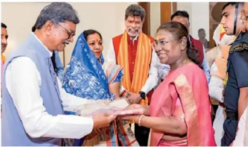 रायपुर। ( शोर संदेश ) राष्ट्रपति द्रौपदी मुर्मू के छत्तीसगढ़ आगमन पर नेता प्रतिपक्ष डॉ चरणदास महंत ने सौजन्य मुलाकात की। इस दौरान उन्होंने गुलदस्ता और कोसा की साड़ी भेंट कर उनका अभिनंदन किया।