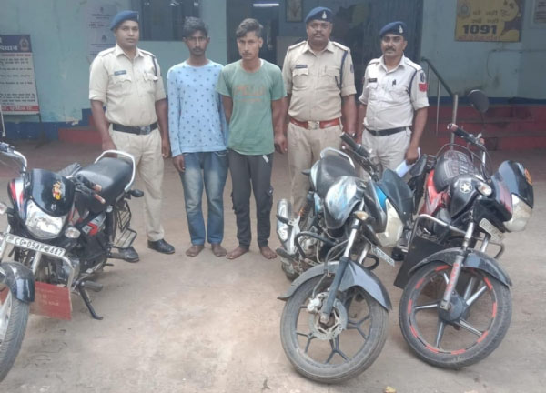 कुरुद पुलिस से मिली जानकारी के अनुसार 20 अक्टूबर को दोपहर 12 बजे प्रार्थी विजय कुमार मंडावी 30 वर्ष पुत्र अरूण मंडावी ग्राम बोरतरा थाना गुरूर जिला बालोद ने रिपोर्ट दर्ज कराई कि उनके बाइक को शिक्षक कालोनी कुरूद से कोई अज्ञात चोर ने चोरी कर लिया है। शिकायत पर पुलिस ने अज्ञात चोरों के खिलाफ जुर्म दर्ज करके पतासाजी में जुटी हुई थी। मुखबिर की सूचना पर पुलिस ने शंका के आधार पर गगनदीप और इंद्रजीत सिंह को संदिग्ध हालत में अरिहंत पेट्रोल पंप के पास मिलने पर कड़ाई से पूछताछ किया गया, तो आरोपितों ने बाइक की चोरी करना स्वीकार किया। इसके अतिरिक्त दोनों आरोपितों ने मिलकर 18 अक्टूबर को शाम को जियो आफिस के सामने व धमतरी घडी चौक के पास शाम करीबन सात बजे एक पार्किंग स्थल से बाइक की चोरी करना स्वीकार किया। आरोपितों के पास से पुलिस ने चोरी की तीन बाइक जब्त कर कार्रवाई की है। गिरफ्तार आरोपित गगनदीप 27 वर्ष बाडमिक कालोनी भठींडा रोड जैतो पंजाब हाल पता पचरी पारा कुरूद और इंद्रजीत सिंह 27 वर्ष रसाल पट्टी वार्ड जैतो (पंजाब) हालपता पचरी पारा कुरूद निवासी है। पुलिस ने दोनों आरोपित गगनदीप एवं इंद्रजीत सिंह को विधिवत गिरफ्तार कर न्यायिक रिमांड पर भेज दिया है।