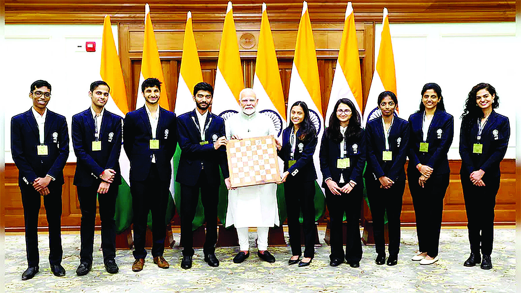 नई दिल्ली। ( शोर संदेश ) प्रधानमंत्री नरेंद्र मोदी ने नई दिल्ली स्थित अपने सरकारी आवास पर शतरंज ओलंपियाड में स्वर्णिम इतिहास रचने वाली भारतीय टीमों से मुलाकात की. इस मुलाकात का वीडियो सामने आया है. पीएम मोदी ने पिछले रविवार को बुडापेस्ट में शतरंज ओलंपियाड-2024 में ओपन सेक्शन वर्ग में स्वर्ण पदक जीतने वाली पुरुष और महिला दोनों टीमों से खास मुलाकात की. ओलंपियाड के 97 साल के इतिहास में पहली बार भारत ने दोनों कैटेगरी में गोल्ड जीते हैं.